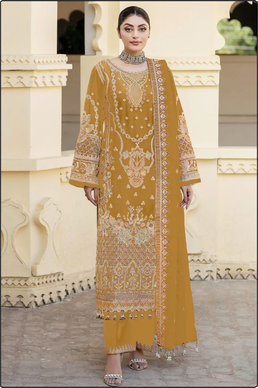 Embroidered with Handmade Pour Organza Front (1.5 Yards)
