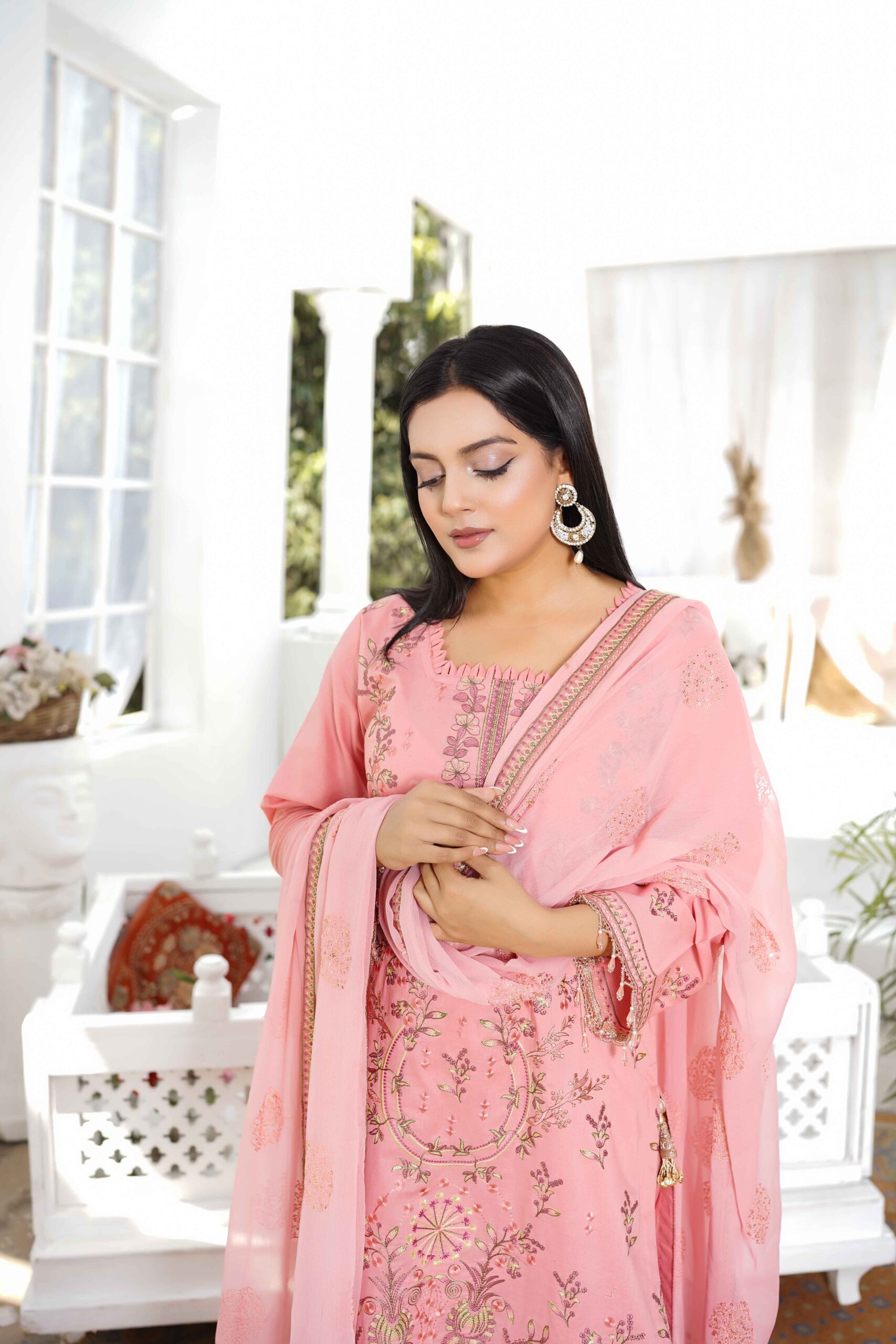 Embroidered Chiffon Dupatta with Ready 4 Side Border (2.5 Yards)