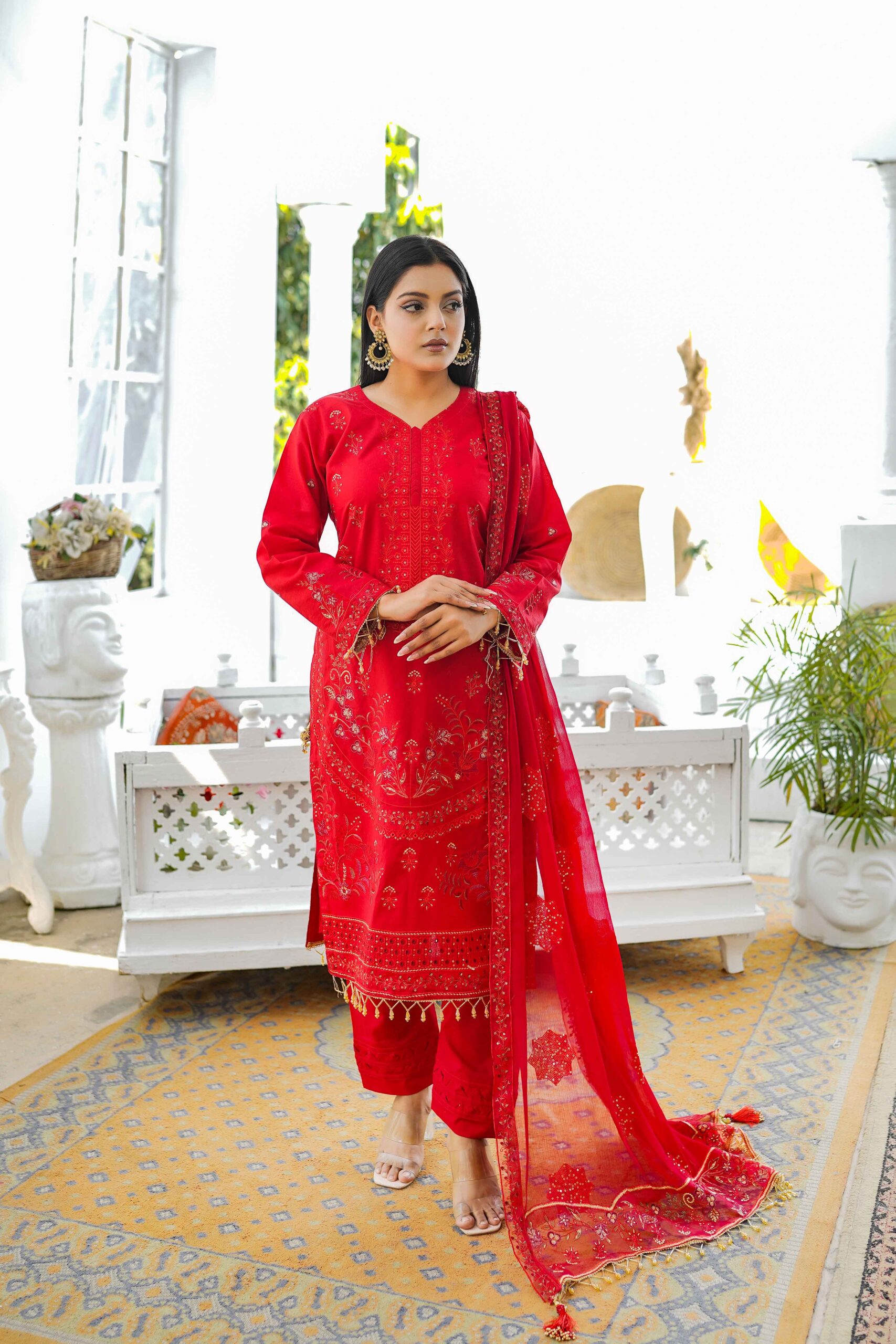 Embroidered Chiffon Dupatta with Ready 4 Side Border (2.5 Yards)